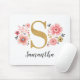 A beautiful, feminine monogrammed pink floral mouse pad, featuring pink flowers and a faux gold monogram letter S. Personalise the mouse pad by adding your name underneath the monogram. Makes a fun gift for a friend or for a bridesmaid gift. Designed for you by Blackberry Boulevard.