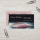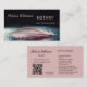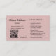 This feminine luxury notary loan signing agent business card features a pink feather reflecting on a wet surface. With a scannable qr code and a list of services on the backside.