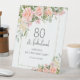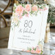 Feminine Peach Pink Rose Floral 80th Birthday Pedestal Sign