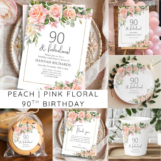 Peach | Pink Rose Floral 90th BirthdayDesigned by Natalie
