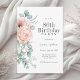 Feminine Pink and Beige Floral 80th Birthday Party Invitation