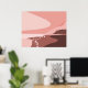 Feminine pink digital art beach seascape as poster print that allows colour customisation by modifying the burnt coral fill colour. Like this, it is possible to adjust the home decor for your wall to any existing or newly chosen accent coloration. Light- to mid-range tones work best to colour it your way. For custom designs or help with colour customisation please contact https://t.me/KBMD3signs_chat.