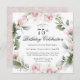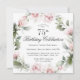 Celebrate a 75th birthday in beautiful feminine style with this unique square-shaped birthday party invitation in pink florals. Your event text is surrounded by a floral watercolor wreath of pastel pink roses and wispy greenery. All of the text can be personalised with your custom party text, including the age. You can use this invitation template for other ages by personalising the number 75 to your desired age number. This beautiful invitation sets the tone for a lovely celebration.