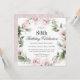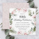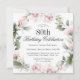 Celebrate an 80th birthday in beautiful feminine style with this unique square-shaped birthday party invitation in pink florals. Your event text is surrounded by a floral watercolor wreath of pastel pink roses and wispy greenery. All of the text can be personalised with your custom party text, including the age. You can also use this invitation template for other ages by personalising the number 80 to your desired age number.