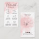 Feminine facial aftercare business card with blush pink watercolor background. This pink aesthetic facial care instructions card includes care icons for each step, a script font and space for your salon logo and contact details - the perfect addition to your business stationery design.