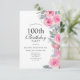 Feminine Pink Watercolor Floral 100th Birthday Invitation