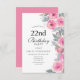 Feminine Pink Watercolor Floral Chic 22nd Birthday Invitation