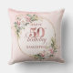 Feminine Rose Gold Blush Floral 50th Birthday Gift Cushion