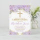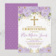 Feminine Watercolor Purple Flowers Christening Invitation