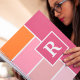 Stripes from soft to bold pink and orange colours with your Monogram. Notebook with popping colours for more fun at working.