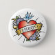 Feminist Button - This ultra cool pinback button features a realistic tattoo heart with a vintage style banner and the word Feminist. An awesome gift idea for young women finding their way. Style up, seize the day and show who's in charge with this very cool feminist button.