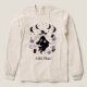 This exclusive design features a chic, modern witch with flowing hair and a stylish hat, flying under crescent moons and sparkling stars. Mystical details like tarot cards, potion bottles, and blooming flowers surround her for a glam, witchy-chic look. Pops of neon purple and shimmering silver create a bold, feminine vibe perfect for autumn nights, parties, or casual wear.
