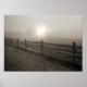 Fence and Sunburst Through Fog near Sharon Poster