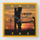 Fence Line Sunset Silhouette Square Wall Clock