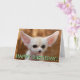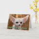 Cute fennec fox customisable greetings card. Text on front reads "Happy birthday!" and text inside reads "Hope you have a great day!" Text can be personalised.