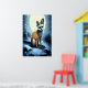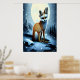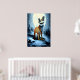 Fennec Fox in the snowy mountain, it is snowing in the night with a moon in the background. This is a AI generated art.