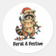 Feral And Festive Racoon Christmas Xmas Lights Classic Round Sticker