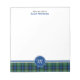Personalised note pad with a plaid border and monogram. Features a vintage bright blue, green, red, black and white Scottish plaid pattern from 1952. Traditional family tartan for Clan Ferguson, Ferris, and MacKersie.