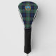 Ferguson Caln tartan plaid golf head cover - Golf started in Scotland - so show your Scottish roots with the Ferguson Clan Tartan on the links. The gorgeous modern Ferguson Tartan is highlighted by the shield of Azure blue graced with the 3 boars heads for fierce courage and the silver buckle for loyalty - all set off with golden leaves.
