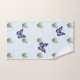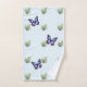 Enhance your space with a whimsical hand towel adorned with green fern leaves and vibrant, playful butterflies set against a soft blue backdrop for a striking contrast.