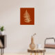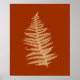 A silhouette drawing of a fern leaf in fall in a light brown color with a dark reddish brown background.