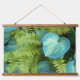 Decorate your living space with this horizontal, hanging wall tapestry with wooden tops that features a photo image of green ferns and variegated Hosta plants.