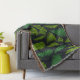 A quality printed throw has its advantages. This is a much finer weave throw than its loopier cousins, and though lighter, it is worth the investment for custom room accessorizing. The back is much prettier than the typical brown, and the fringe on the long sides very vivid, the selvage nicely done. Before photographing, I washed the throw in cold water, delicate, with a thicker woven throw the same size. On tumble dry low, this throw was dry in half the time as the other. This is a very practical quality if you use throws for furniture covers or to wrap up in frequently. The sleekness of the fabric makes it a great layer for accenting or protecting without the feeling of sitting on too much stuff. Perfect for napping or when you feel a light chill coming on. The color printing is beautiful and on this fabric, matched the design and color of my Photoshop image. This is an advantage for blending room fabrics and colors. The fringe on the short sides prints the colors from the design image and therefore varies from the side fringe. I streaked a white fractal line through the plaid pattern to give the illusion of weaving. This printed as crisp as an illusory thread, and put some white in the short side fringe, showing another advantage of print vs loomed- for artistic purposes, line lines, detail, and color integrity can be planned and preserved. My loomed throws have color limitations and more of a needlepoint texture. Print throws reproduce an exact image. The throw felt a little stiff straight out of the package, but this went away in the first delicate wash. Of course I searched the wash water for ink or bleeding and there was none.