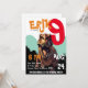 Roar into adventure with this fierce T-Rex birthday invitation! Perfect for kids who love dinosaurs, this bold design features a terrifyingly awesome T-Rex, a massive red number to show off the age, and a fun layout that’s fully customisable. The striking mint green and black background with splashes of orange and white make this invitation pop! Add your child’s name, party details, and get ready for a Jurassic celebration your guests won't forget.
