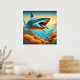 A fearsome shark bares its sharp teeth with its mouth wide open, ready to attack. The detailed painting captures the power and danger of this apex predator.