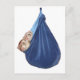 Postcard with photo of 2 ferrets asleep in a blue sleeping bag