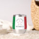 Celebrate Festa della Repubblica, the National Day of Italy, with this striking June 2nd stainless steel stemless wine tumbler, which features the three colours of Italy's national flag, Stellone d'Italia (Great Star of Italy), and customisable top and bottom text commemorating the birth of the Italian Republic. Reverse shows identical design.