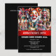 A vibrant, striking and realistic looking 3D ai graphic of clowns and carnival showgirls dressed in dramatic, glam, luxurious festival costumes adorned with feathers, gemstones and intricate brocade. All of them have beautifully made up faces and are wearing low cut tops. Just their head and shoulders s are visible. All of the showfolk are set against a black background that has a faux shimmer red band below them on which white editable text templates appear for your custom wording. This elegant, luxurious and upmarket watercolor design is ideal for a mardi gras, festival, carnival, parade or circus celebration whether it be a retirement, birthday, halloween or a sit down dinner party. This is suited to both teens and adults