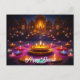 A breathtaking late evening scene unfolds on this postcard, depicting the joyous festivities of Diwali. Against a canvas of deep indigo, the sky sparkles with stars, providing a celestial backdrop to the radiant lights below.