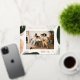 Festive Abstract Frame, Foil Holiday photo card. Features, sandy beige and green colour backgrounds with template space for your personal holiday message.