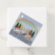 Festive animals with with fawns, rabbits, hedgehogs, foxes. Some wear hats, others let balloons fly.