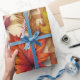 Festive Autumn Leaves on Plaid Wrapping Paper