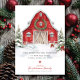 This festive winter moving announcement Christmas card features a red barn with a green wreath, set against a snowy landscape and trees. The card is perfect for sending to friends and family during the holiday season to let them know about your new address while also sharing your love of the country. The overall design is festive and charming, and the card is sure to put a smile on the faces of your loved ones.