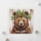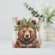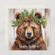 This flat holiday greetings card features a watercolor style bear adorned with a crown of boughs. The "Happy Holidays!" text can be edited and the back is a plain cream where a personalised message can be written.