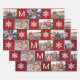 Festive Berry Snowflakes Monogram Photo Collage Wrapping Paper Sheet