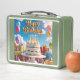 This is a standard metal lunchbox that appears to work just fine. We designed this box ourselves with an uploaded photo and custom text on the front and back. It looks absolutely beautiful except the front of the lunchbox is not centered like it shows in the photo. The print borders don't align with the inset flat part of the box where the preview photo online showed it perfectly centered in there. The back looks nice and centered though.
