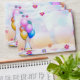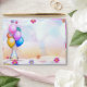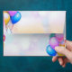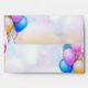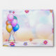 Colourful ballons,funny hat and tender flowers make festive envelope for birthday party invitations and or wishing card.