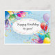 Festive, colourful balloons, ribbons and confetti with a blue background and white word frame.