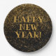 Festive Black and Gold Glitter Happy New Year Paper Plate