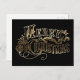 Merry Christmas! Elegant Script Faux Gold Foil Typography on Black Background, Postcard