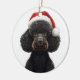 Festive Black Poodle Dog in Santa Hat Illustration Ceramic Tree Decoration
