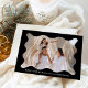 Send festive holiday greetings to your friends and family with this trendy holiday photo card! The simple Christmas card displays your horizontal photo framed in a wavy, black retro-style frame. Personalise the minimal holiday card with a custom greeting (shown as Merry Christmas) and your family name in white lettering. The card reverses to display a black and white diagonal stripe pattern.