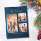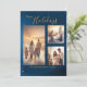 Festive Blue 3 Photo Collage Modern Christmas Holiday Card
