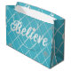 Festive Blue and Silver 'Believe' Holiday Large Gift Bag