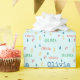 Festive Blue Christmas Repeating Name Personalised Wrapping Paper is a colourful wrapping paper with text and a Christmas tree. You can change the text and the initial.