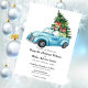 Celebrate your love this holiday season with our stunning Festive Blue Truck Casual Christmas Wedding Invitation. A watercolor of a blue pick-up truck packed with an evergreen and wrapped gift packages in red and green top the invitation with the modern heartfelt wording "together with the parents" the bridal couple invite guests to their wedding celebration. The text is in a coordinating family of fonts, in black.